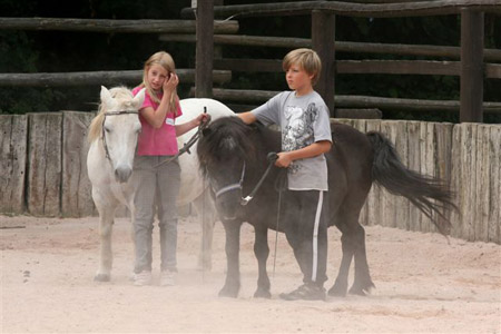 Unsere Reitfreizeiten bietet allen, die mit dem Reiten beginnen möchten, aber auch jenen, die bereits Reiterfahrung besitzen, eine gute Gelegenheit, ganz intensiv Reitkenntnisse zu erlangen bzw. zu festigen und zu erweitern. In sinnvoll aufgeteilten Gruppen wird unter der Leitung unserer qualifizierten Reitlehrer ein abwechslungs- und lehrreicher Reitkurs veranstaltet, der keine Wünsche offen lässt. Hier wird entweder an der Longe, in Einzel- oder kleinen Gruppenstunden unterrichtet.Für die fortgeschrittenen Reiter sind Ausritte geplant. Desweiteren wird in Theoriestunden alles Wissenswerte rund um das Thema Pferd und Reiten gelehrt. Die Reitschüler/innen werden in den täglichen Arbeitsablauf auf der Koppel eingebunden und lernen miteinander als Gruppe aufeinander einzugehen und sich gegenseitig zur Seite zu stehen. Während der Reitfreizeit darf sich jeder Reitschüler um ein Pflegepony kümmern.